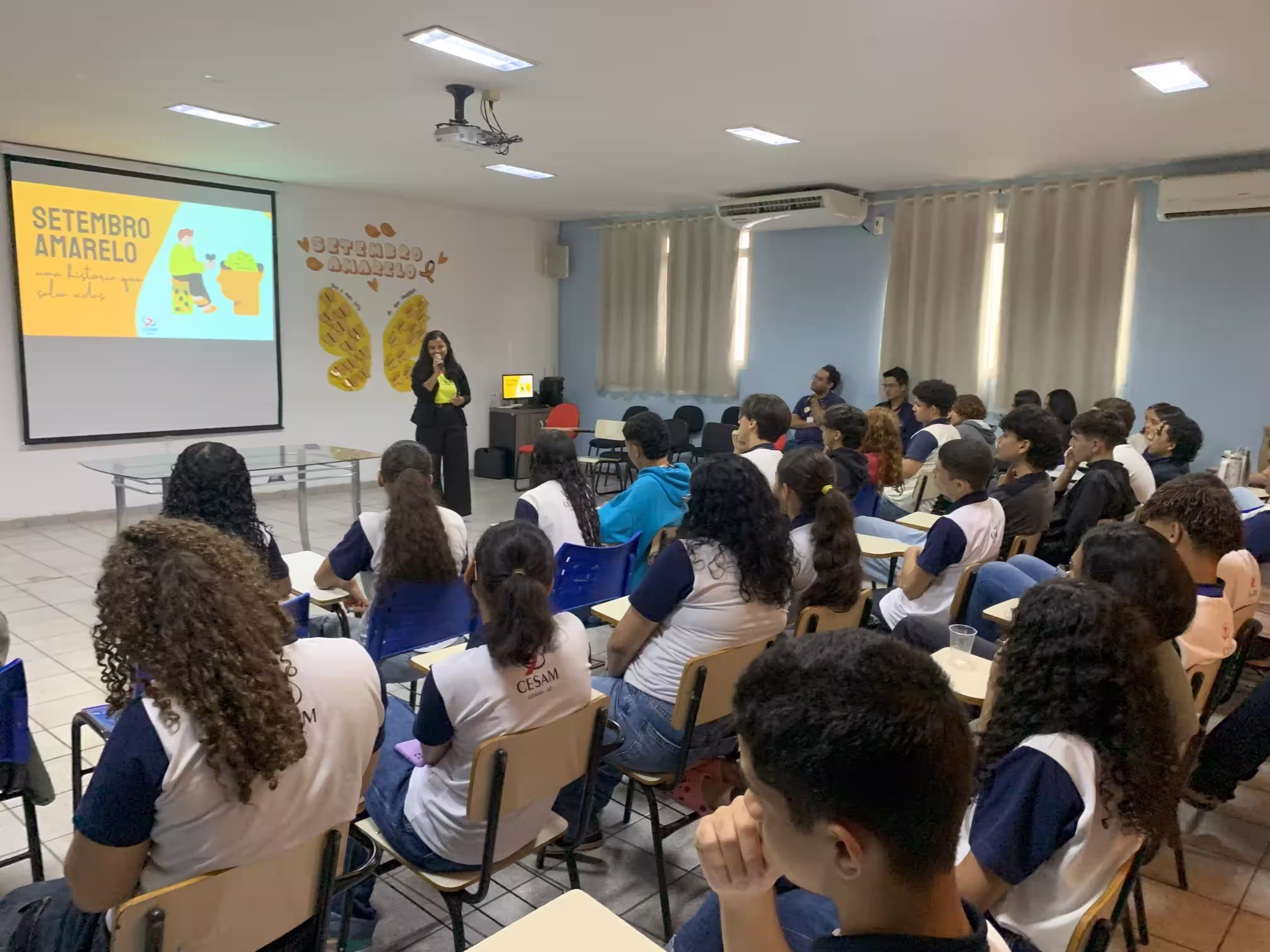 Entre os dias 22 e 25 de setembro, o Centro Salesiano do Aprendiz(CESAM) de Goiânia promoveu um ciclo de palestras com foco na sensibilização para o Setembro Amarelo, mês dedicado à conscientização e prevenção ao suicídio. Os encontros abordaram diversos aspectos relacionados à saúde mental, autocuidado e valorização da vida, sendo uma das atividades mais importantes da Formação Permanente de Aprendizes. A iniciativa fortalece o desenvolvimento integral dos jovens do Programa de Socioaprendizagem da instituição, discutindo temas relacionados à vida profissional, pessoal, social e emocional.