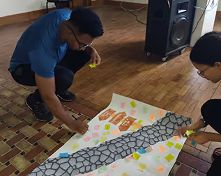 No quarto e último encontro, um cartaz construído pelas educadoras serviu como base para uma reflexão coletiva. Nele, cada educador colou palavras que representavam o caminho percorrido pelos educandos dentro do Centro Juvenil. Foi um momento profundo de espiritualidade e compromisso, onde se fortaleceu a consciência de que a presença do educador é guia, companhia e esperança para crianças e adolescentes.