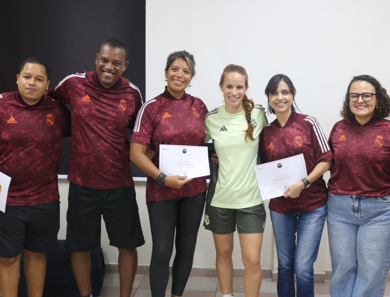 Entre os dias 24 e 26 de março, instrutores esportivos das unidades sociais do Jacarezinho e de Niterói, acompanhados por suas respectivas gestoras, participaram de uma formação promovida pela Fundação Real Madrid, realizada em São Paulo, no Centro Social Santa Luzia. A atividade reuniu profissionais do Rio de Janeiro e de São Paulo e foi conduzida pela coordenadora de formação Sara Villamariz do Nascimento.