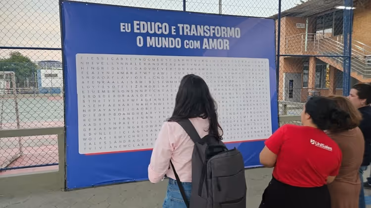 Em um momento inicial de acolhida, que teve como tema "Educar com amor é a nossa forma de mudar o mundo", os professores foram recebidos com um caça-palavras com o título "Eu educo e transformo o mundo com amor", em que poderiam buscar e encontrar o seu nome, marcando-o no painel.